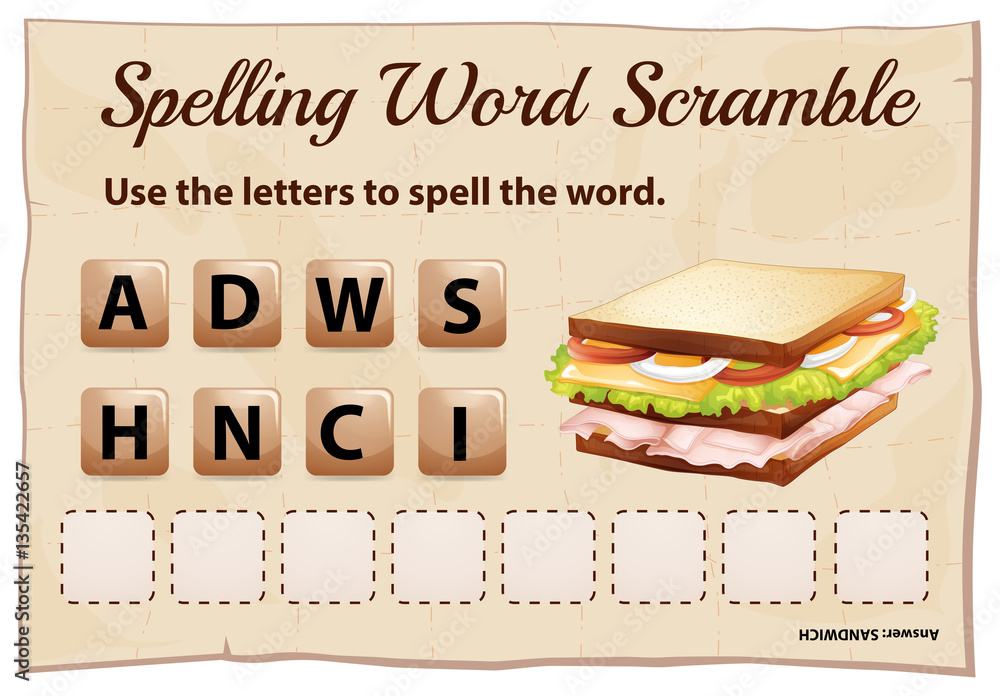 Spelling Word Scramble Game Template With Word Sandwich Stock Vector Adobe Stock